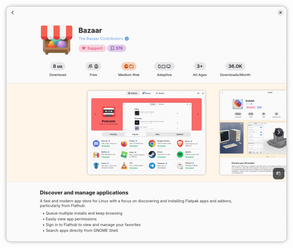 Bazaar is a new app store for GNOME with a focus on discovering and installing applications and add-ons from